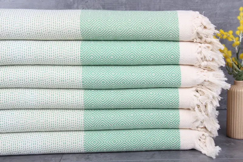 100% Organic Turkish Cotton fibers ensure superior absorbency and softness, resulting in towels and blankets with exceptional durability. Characterized by dimensions of 40x70 inches (100x180 centimeters) and a weight of 220 grams/sq. meters, these products feature hand-weaving tolerances of 1-2.5cm.