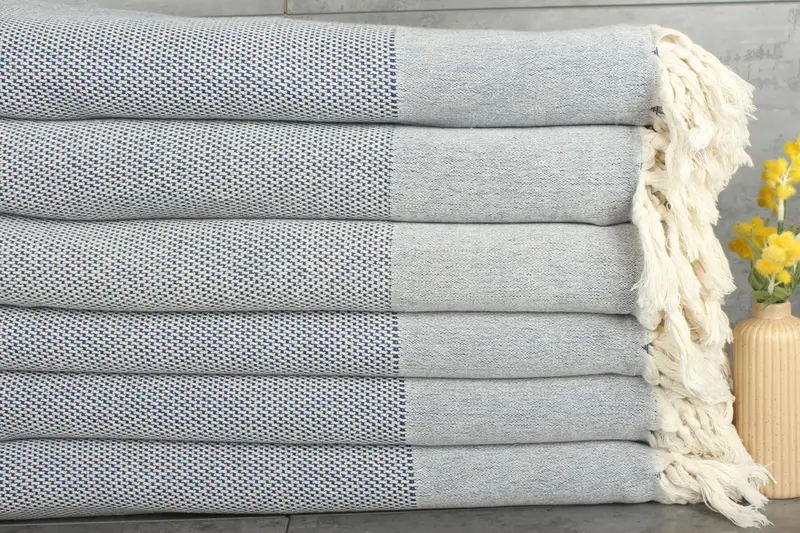 Turkish cotton blankets, renowned for their durability and absorbency, are crafted from recycled and organic cotton, ensuring sustainability and eco-friendliness. The blankets feature an animal print pattern using techniques such as Patola, Kantha, and Block print, resulting in distinctive and aesthetically pleasing designs. Each blanket measures 79x95 inches and weighs approximately 976 grams, with hand-weaving tolerances allowing variations of 1-2.5 cm.