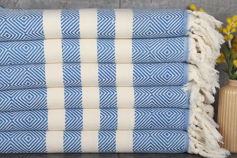 Characterized by the use of 100% organic Turkish cotton, these towels ensure natural dye colors and high absorbency. Resulting in towels with a weight of 100 grams, the dimensions are specified as 20x32 inches or 50x80 centimeters. Tolerances in hand-weaving may vary up to 1-2.5cm.