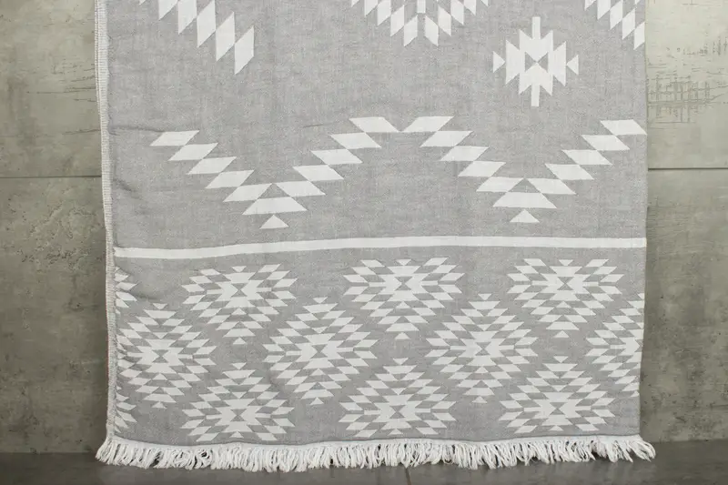 Characterized by high-quality construction, these blankets are composed of 100% organic cotton, ensuring hypoallergenic and environmentally friendly properties. Resulting in exceptional absorbency, the Turkish cotton blankets feature a weight of 600 grams and dimensions of 83x56 inches (210x140 centimeters).