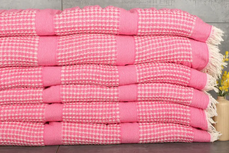 Turkish cotton towels and blankets, ensuring superior softness and style through their composition. Characterized by 100% organic Turkish cotton, these products exhibit excellent absorbency. Each piece is meticulously hand-woven, resulting in a final dimension of 71x95 inches or 180x240 centimeters and a weight of 1560 grams. Deviations of 1-2.5 cm in dimensions are permissible due to manual craftsmanship. Embroidery customization is available with a minimum order of 500-1000 pieces or via additional loom setup costs. Pre-shrunk status ensures ...
