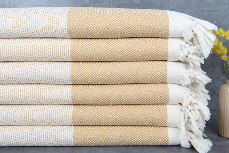 Characterized by its soft texture, the blanket is crafted from 100% organic Turkish cotton, ensuring superior absorbency and breathability. Weighing 220 grams per square meter and featuring dimensions of 79x103 inches or 100x180 centimeters, it has a tolerance of 1-2.5 centimeters. Ensuring quality, each piece is hand-woven with precision.