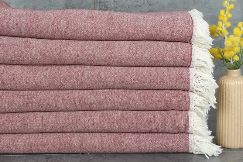 Organic cotton fibers characterize these Turkish blankets, ensuring superior absorbency and comfort. The blankets are composed of 100% organic Turkish cotton, resulting in a weight of 506 grams and dimensions of 60x71 inches (150x180 cm). Hand-woven techniques allow for minor tolerances of 1-2.5 cm in the dimensions.