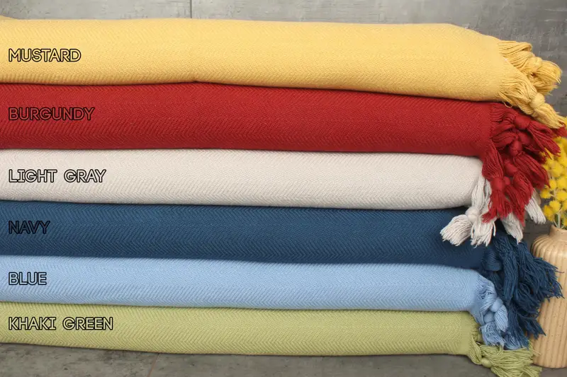 These throws and blankets are made from 100% organic Turkish cotton, ensuring a blend of recycled and organic fibers. Characterized by their absorbent properties, each piece weighs 1600 grams and boasts dimensions of 87x69 inches or 175x220 centimeters. The hand-weaving process results in a tolerance of 1-2.5 centimeters.