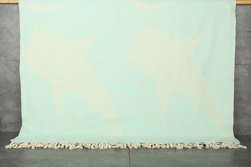 Dimensions are 91x99 inches or 230x250 centimeters, with a weight of 1200 grams. Hand-weaving introduces a tolerance of 1-2.5cm, maintaining the artisanal quality of each piece.