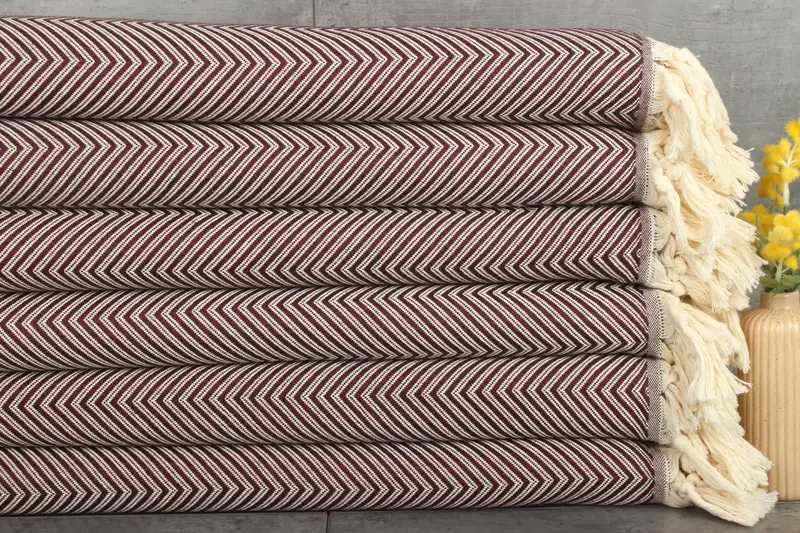 Fiber composition emphasizes a mix of recycled and organic cotton, ensuring durability and sustainability. The towels and throws are characterized by their superior absorbency, increasing with each wash.