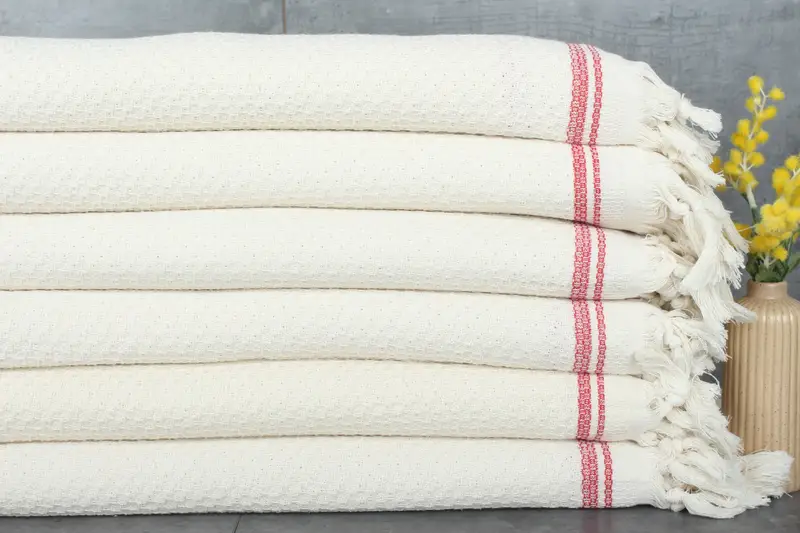 The product is characterized by its multi-fiber composition of 100% organic Turkish cotton, ensuring high absorbency and durability. These cotton fibers result in a weight of 1300 grams and dimensions of 93x91 inches or 230x235 centimeters, with hand-weaving tolerances up to 2.5 cm. Customization options include embroidery with an additional 2-day production time. Pre-shrunk status ensures minimal shrinkage post-wash. Standard shipping times vary from 2-6 days depending on the region, with free shipping on orders over 35 USD. Returns and exchan...