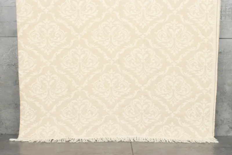 The Baroque Design Blanket, designed for various home settings, is characterized by its use of 100% organic cotton. This material ensures enhanced absorbency, making it ideal for a range of applications. The blanket measures 103x107 inches (260x270 cm), with a weight of 1900 grams, providing a substantial and durable product. Hand-weaving techniques result in tolerances of 1-2.5cm.