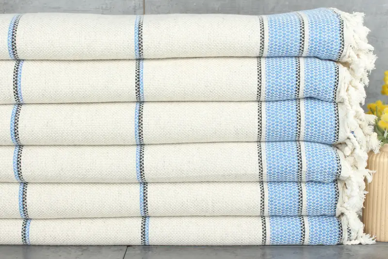 Characterized by a 100% organic Turkish cotton composition, our linen blankets and towels ensure optimal absorbency. Resulting in towels and blankets weighing 1200 grams, these products measure 103x95 inches or 240x260 centimeters with a hand-weaving tolerance of 1-2.5cm. Ensuring customization, our products can be embroidered same-day for expedited delivery. Pre-shrunk and ready for use, the shipping time ranges from 2-6 days worldwide, with complimentary shipping over 35 USD. Our return and exchange policy can be reviewed on our homepage.