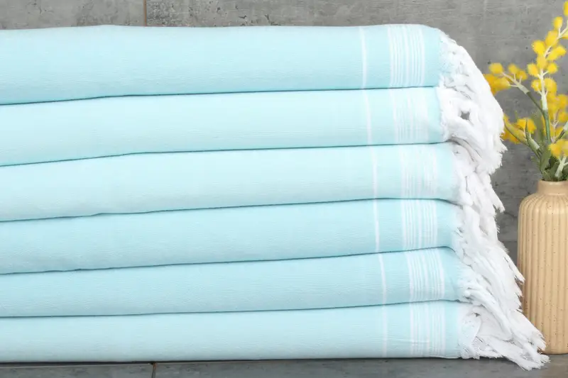 Ensuring product efficacy, the Turkish blankets and towels are composed predominantly of cotton, resulting in high absorbency. The dimensions of the blankets and towels range from 91x56 inches to 140x230 centimeters, with a weight of approximately 400 grams. Hand-weaving tolerances of 1-2.5 cm are expected.