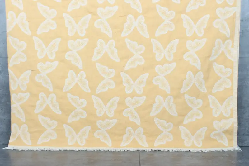 Characterized by its embroidered and dyed fabric techniques, the throw features a butterfly pattern in mustard and beige hues, suitable for multiple home styles, including Gothic. Weighing 1...