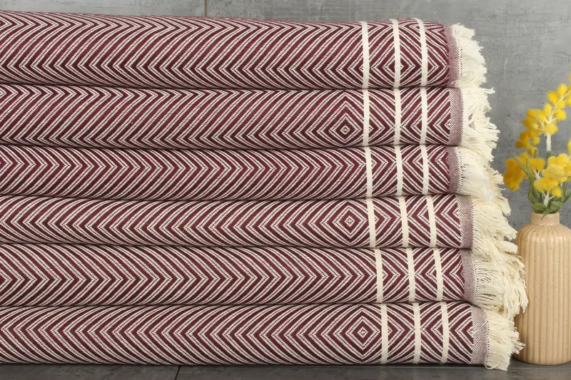 Characterized by organic and recycled cotton composition, the blankets ensure superior absorbency and softer texture, resulting in a luxurious feel. Each piece, measuring 95x71 inches (180x240 cm) and weighing 1000 grams, adheres to hand-weaving tolerances of 1-2.5 cm. Ensuring embroidery customization and pre-shrunk status, delivery is prompt within specified timelines, backed by clear shipping and return policies. Delivery for US customers is from the US warehouse, while international shipments originate from Turkey.