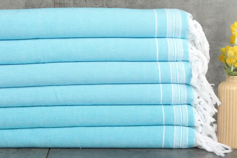 Recycled and organic cotton characterizes the material, ensuring superior absorbency and softness. The cotton fibers, weighing 400 grams, measure 91x56 inches (230x140 cm), with a tolerance of 1-2.5 cm due to hand-weaving. Embroidered details can be customized, with pre-shrunk status ensuring minimal shrinkage post-wash. For US customers, fulfillment is from the US warehouse, with an option for overnight shipping. For international customers, shipping is from Turkey with estimated delivery times ranging from 2 to 6 days depending on the region.