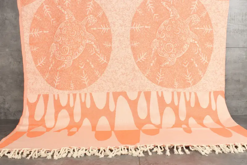 Turkish cotton characterizes the product with its 100% organic fibers, ensuring superior absorbency. The organic cotton towels and throws are sized at 79x99 inches or 200x250 centimeters, with a weight of 1250 grams, and a hand-weaving tolerance of 1-2.5cm. Embroidery customization is available with an additional two days for processing. The throws are pre-shrunk, and shipping options include free shipping for orders over 35 USD, with specific delivery timelines for various regions. Returns and exchanges are managed per the terms outlined on th...