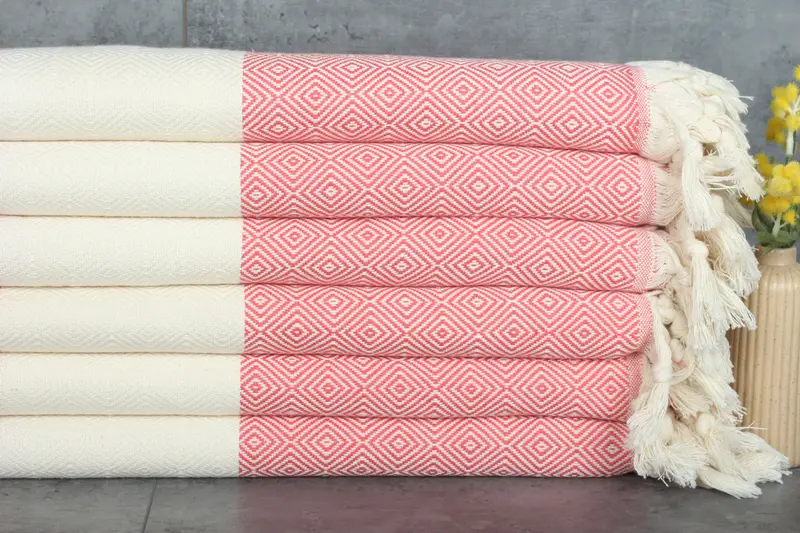 Turkish towels, ensuring the use of %100 organic Turkish cotton, are characterized by their exceptional absorbency and lightweight nature. Resulting from low-cycle machine washing, these towels become increasingly absorbent with use. Turkish beach towels exhibit natural-dyed colors and are woven by hand, allowing for tolerances of up to 2.5 cm.