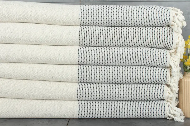 Characterized by its 100% organic Turkish cotton, the blanket is both lightweight and highly absorbent, ensuring optimal comfort and durability with every use. Measuring 95x95 inches or 240x240 centimeters and weighing approximately 1500 grams, the blanket accommodates various sizes. The fiber composition allows for slight variations in hand-weaving tolerances, typically 1-2.5 centimeters.