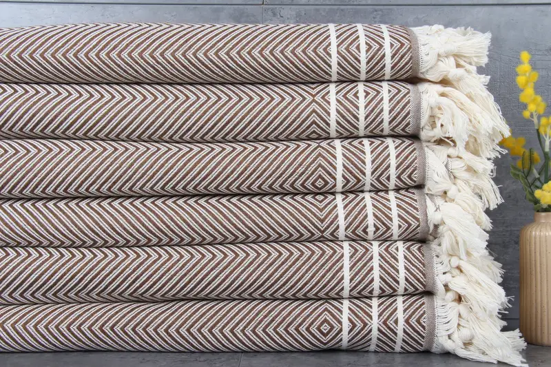 Characterized by 100% organic Turkish cotton, the blankets and towels exhibit a unique natural dye. Ensuring superior absorbency, the towels weigh 1000 grams and are crafted in standard dimensions of 71x95 inches, translating to 180x240 centimeters. Resulting in a hand-weaving tolerance of 1-2.5cm, these items are pre-shrunk and ready for immediate use.