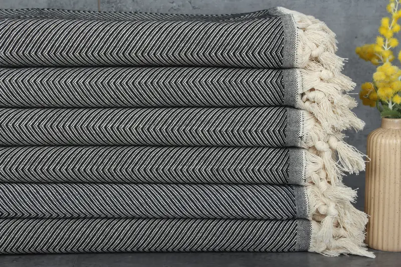 Fiber composition features 100% organic Turkish cotton, ensuring high absorbency. The Turkish blanket is 83 x 67 inches (210 x 170 cm), weighing 1130 grams, with hand-weaving tolerances of 1-2.5 cm. Embroidery customization is available, with an additional two days for production. Pre-shrunk status ensures consistent sizing. Shipping options include free delivery for orders over $35 USD, with global delivery times varying from 2 to 6 days. Returns and exchanges are managed according to specified terms.