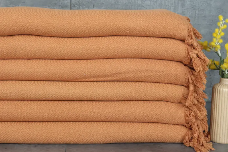 The blanket, weighing 1254 grams, is characterized by its 107x79 inches/200x270 centimeters dimensions, crafted from organic cotton ensuring superior absorbency and durability. Each blanket exhibits a tolerance of 1-2.5 cm due to hand-weaving techniques. The production process includes personal customization options for embroidery and pre-shrunk treatment, enhancing longevity and ease of care.