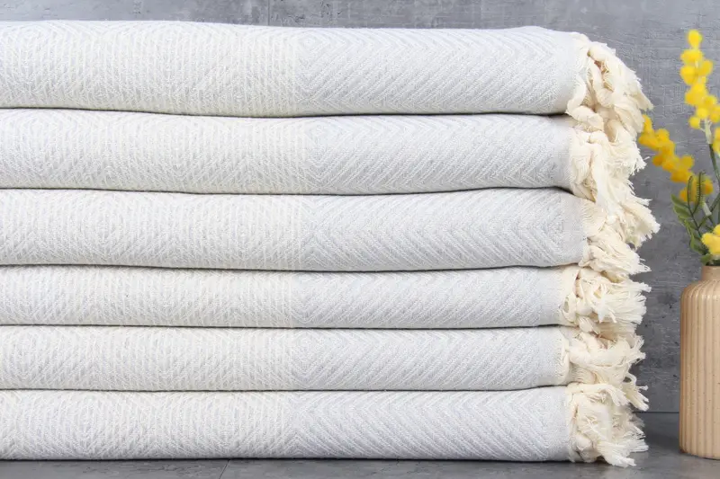 Organic cotton fibers characterize the Turkish beach towel and blanket, ensuring superior absorbency and comfort. These towels and blankets are woven from 100% organic Turkish cotton, resulting in natural dyeing and a weight of 1040 grams. Dimensions are specified as 79x91 inches or 200x230 centimeters, with a hand-weaving tolerance of 1-2.5 centimeters.