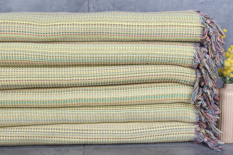 Characterized by high absorbency, these towels and blankets are made from organic Turkish cotton, ensuring breathability and durability. Weighing 1200 grams, they feature dimensions of 99x79 inches or 200x250 centimeters, with slight hand-weaving tolerances of 1-2.5cm. Pre-shrunk, they maintain their form through multiple washes, becoming more absorbent over time.