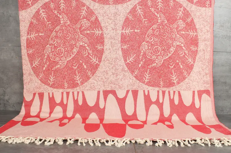 Organic cotton construction characterizes the Turtle Design Throw, providing superior absorbency and durability. This blanket, weighing 1250 grams, measures 79x99 inches or 200x250 centimeters, with hand-weaving tolerances of 1-2.5 centimeters. The pre-shrunk status ensures minimal shrinkage post-wash, maintaining its dimensions.