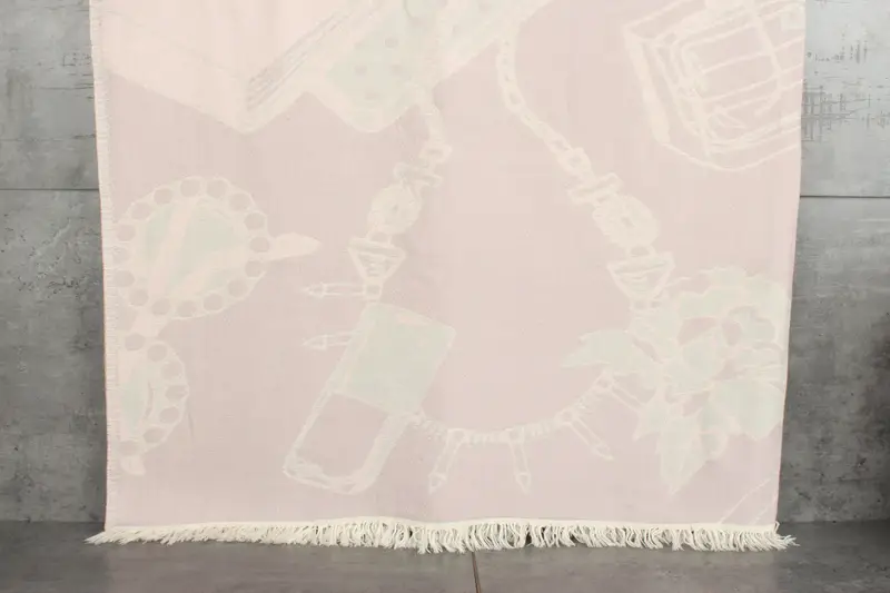 Our product comprises recycled and organic cotton fibers, ensuring a combination of sustainability and superior absorbency. Resulting in an 870-gram weight, this pink cotton throw measures 63x87 inches or 160x220 centimeters, with a hand-weaving tolerance of up to 2.5 cm.
