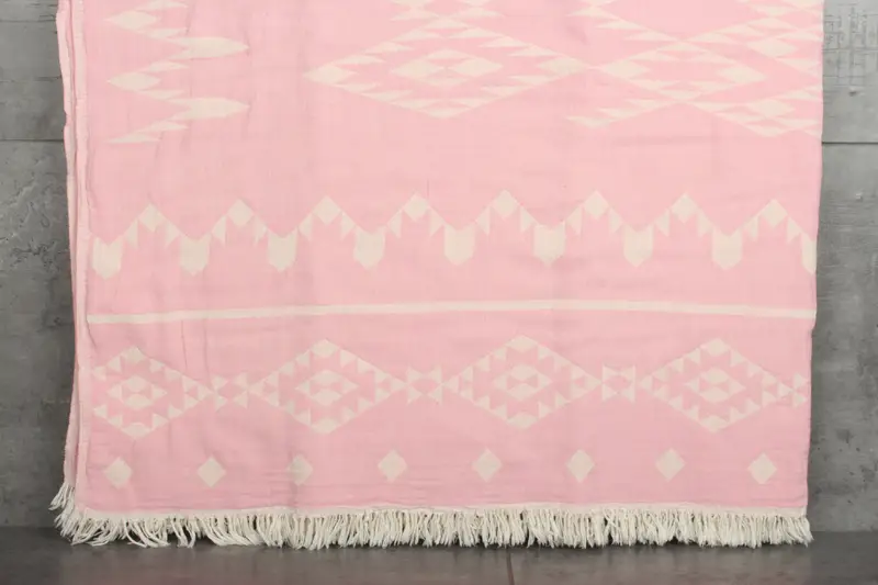 Organic cotton fibers ensure high absorbency and softness, enhancing the utility of the products. Resulting in, the Turkish towels and blankets are characterized by their plush texture and capacity to retain moisture effectively. The organic cotton material also contributes to the natural, earthy color palette achieved through traditional dyeing techniques.