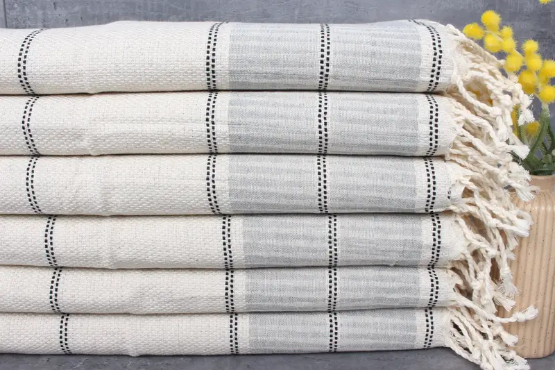Turkish towels, characterized by their superior absorbency, are crafted from 100% organic Turkish cotton, ensuring eco-friendly practices. These towels, with a weight of 120 grams, have dimensions of 20x40 inches (50x100 centimeters) and come with a hand-weaving tolerance of 1-2.5 cm. Production specifications ensure each towel is pre-shrunk, reducing the likelihood of size variation after the first few washes.