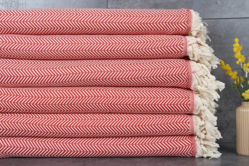 Our Turkish towels, blankets, and throws are characterized by their 100% organic Turkish cotton construction, ensuring superior softness and durability. These items, weighing 1130 grams and measuring 75x91 inches (190x230 centimeters), are naturally dyed and undergo a specific washing process to enhance absorbency with each use. Each piece is meticulously hand-woven, allowing for minor tolerances of 1-2.5 cm.