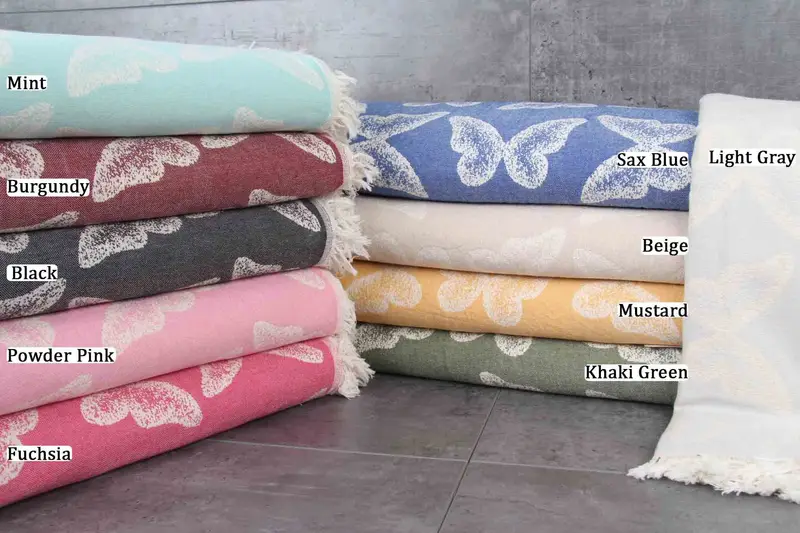 The Turkish throw blanket is characterized by a GSM of 290 grams per square meter, ensuring a high level of absorbency and durability. Fabricated from 100% organic Turkish cotton, the blanket is naturally dyed, resulting in vibrant and fade-resistant colors.