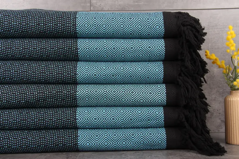 Comprised of 100% organic Turkish cotton, the blankets exhibit superior absorbency, with fibers absorbing more water with each wash, resulting in enhanced softness and durability. Characterized by dimensions of 79x99 inches or 200x250 centimeters, the blankets weigh approximately 1240 grams, ensuring a substantial and cozy feel. The hand-woven nature of the blankets introduces slight tolerances of 1-2.5 cm in dimensions.
