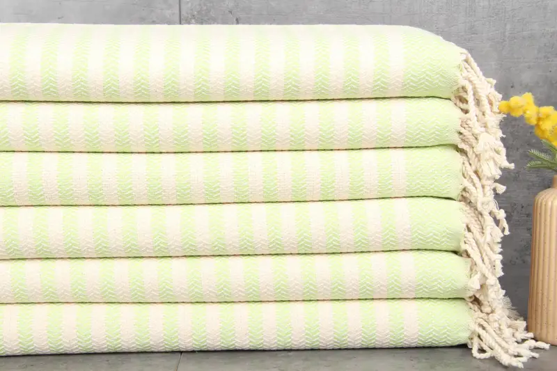 The towels and blankets are characterized by their %100 organic Turkish cotton composition, ensuring a naturally dyed fiber that enhances absorbency. Each item boasts dimensions of 18x40 inches or 45x100 centimeters, with a weight of 115 grams per piece. Hand-weaving tolerances are approximately 1-2.5 cm.
