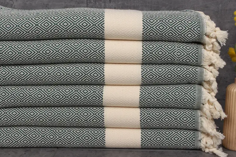 Turkish towels, renowned for their high-quality materials, are characterized by their 100% organic Turkish cotton composition, ensuring superior absorbency and softness. These towels exhibit a weight of 115 grams, with dimensions measuring 20x36 inches or 50x90 centimeters, with hand-weaving tolerances of 1-2.5 cm. Regarding logistics, customization is available for embroidery, and the towels are pre-shrunk, with shipping details varying by region, alongside standard return policies.
