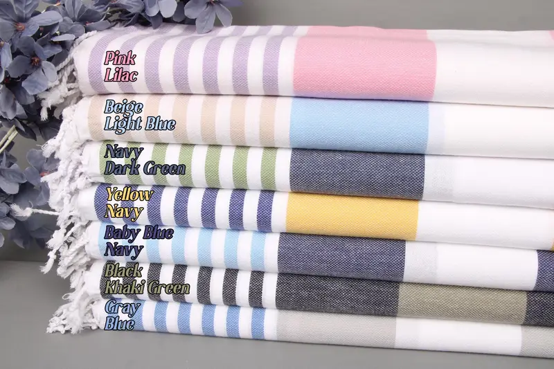 Characterized by its organic cotton composition, each beach towel ensures superior absorbency and softness. Resulting in a gentle texture, the towels are woven from organic Turkish cotton, maintaining their quality through multiple washes. Dimensioned at 70x40 inches or 100x180 centimeters, these towels weigh 300 grams, with a tolerance of ± 2 inches or 5 centimeters due to hand-weaving techniques.