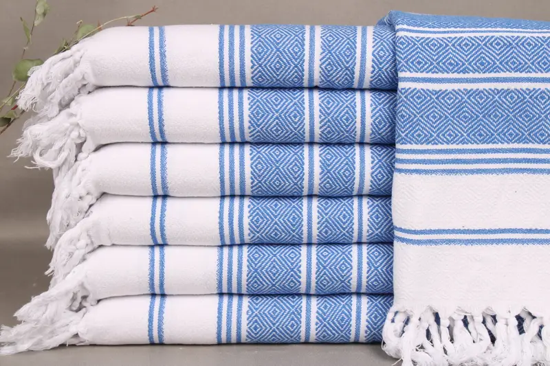 Each towel is composed of organic Turkish cotton fibers, ensuring superior absorbency and a soft texture. Resulting in towels that are not only durable but also hypoallergenic, the use of organic materials ensures a sustainable choice. These towels are woven by hand on looms, resulting in a unique hand-crafted finish.
