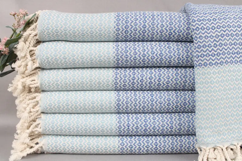 Ensuring high-quality fiber composition, each bath towel is characterized by its organic Turkish cotton material, guaranteeing superior absorbency and a luxurious feel. Resulting in an average weight of 400 grams, the towels are meticulously handwoven with a tolerance of ±2" or 5cm, providing precise dimensions of 40x71 inches or 100x180 centimeters. The customization service ensures each towel can be personalized with embroidery or printed text, enabling precise placement of designs in the recommended central bottom area.