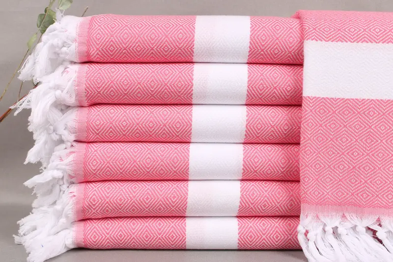 Each towel is woven from organic Turkish cotton on looms, ensuring high absorbency and softness. Characterized by a weight of 360 grams and dimensions of 40x71 inches or 100x180 centimeters, the product allows for a ± 2" or 5cm tolerance due to hand-weaving. Towels require washing before first usage and are best maintained by washing in low cycles at 30-40 degrees Celsius, with the option of using a dryer.