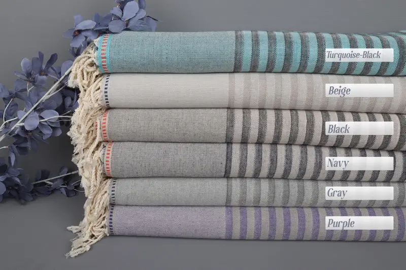 Organic cotton fibers are woven into the product, ensuring superior absorbency and softness. Resulting in a towel characterized by its high quality and gentle texture. The dimensions of the towel are 70x40 inches or 100x180 centimeters, with a tolerance of ±2 inches or 5 centimeters due to hand-weaving. Each towel weighs 300 grams, providing a robust and durable item.