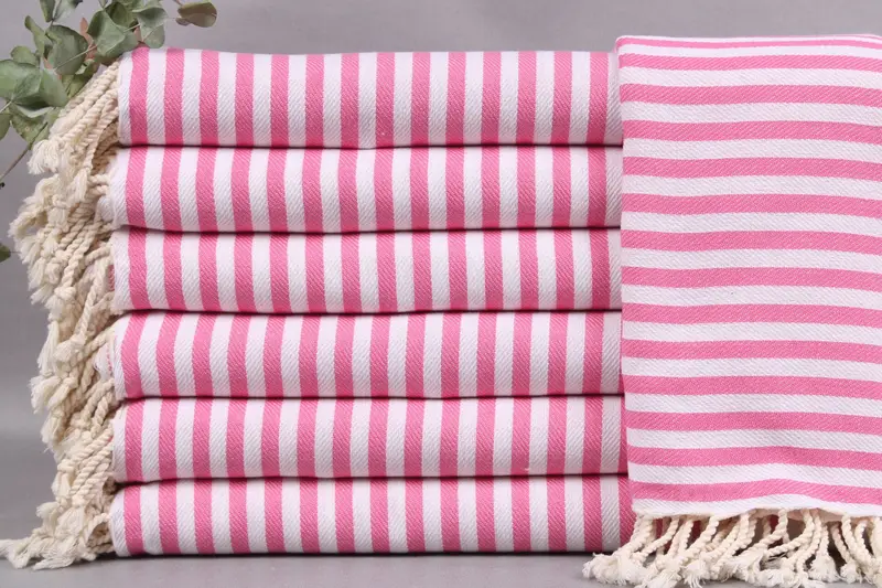 Turkish towels, characterized by their organic Turkish cotton composition, ensure high absorbency and quality. Each towel, measuring 40x76 inches or 100x192 centimeters, with a tolerance of ±2 inches or 5 centimeters, weighs 298 grams, resulting in a balanced weight and size. Towels can be personalized with embroidery options, including letters, names, or logos, ensuring a unique finish. Each order over 35 USD qualifies for free worldwide shipping via FedEx or DHL Express, delivering within 2-5 business days. The return and exchange policies ca...