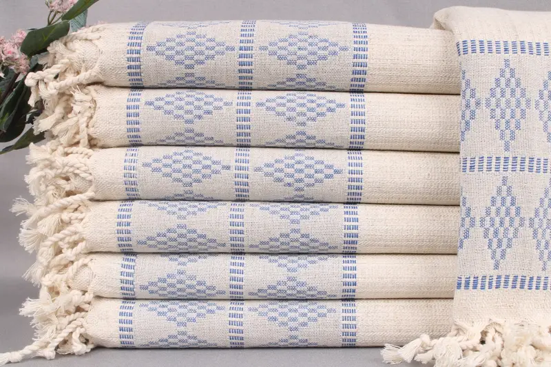 Each listing primarily encompasses beach towels, hand towels, or blankets, all woven from organic Turkish cotton, ensuring a natural fiber composition. Characterized by high absorbency, these towels possess exceptional water retention capabilities, resulting in optimal utility for diverse purposes. Measuring 36x71 inches or 90x180 centimeters, with a weight of 480 grams, each piece adheres to precise dimensions with potential tolerances of ±2 inches or 5 centimeters due to manual weaving techniques.