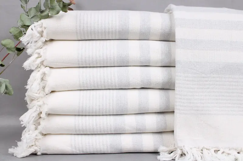 Characterized by its fiber composition, this Turkish beach towel is woven from organic Turkish cotton, ensuring superior absorbency and durability. Resulting in a lightweight towel, its dimensions are 40x67 inches or 100x170 centimeters, with a weight of 410 grams. Due to hand-weaving, size variations of ± 2 inches (± 5 cm) may occur.
