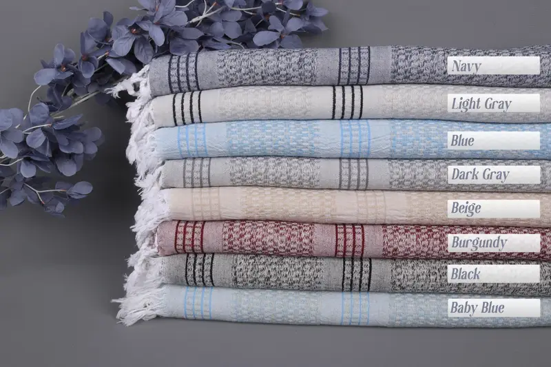Weaving techniques ensure the construction of each Peshtemal Towel, resulting in a product characterized by its superior absorbency and lightweight nature. The towels are woven from organic Turkish cotton, enhancing sustainability and comfort. Each towel measures 70x36 inches or 90x180 centimeters with a permissible deviation of ± 2 inches or 5 centimeters, and weighs approximately 320 grams.