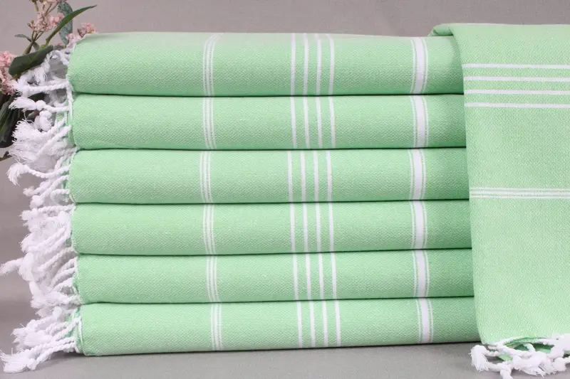 Each Turkish Towel Beach product is characterized by its usage of organic Turkish cotton, providing superior absorbency. The towels measure 40x71 inches or 100x180 centimeters with a weight of 280 grams, ensuring a durable and lightweight feel. Weaving tolerances of ± 2 inches or 5 centimeters ensure precise dimensions.