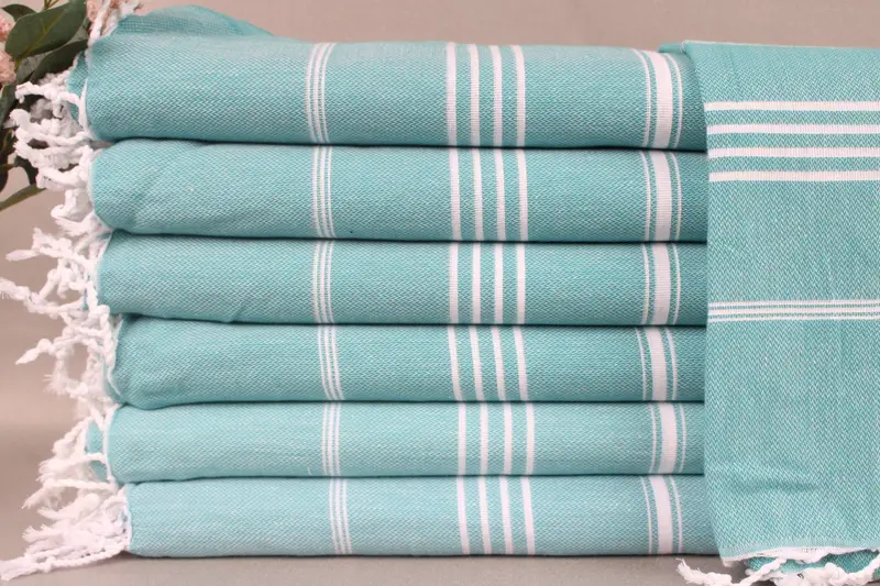 All beach towels, hand towels, and throws in the collection are woven from organic Turkish cotton, ensuring durability and absorbency. Characterized by their 71x40 inches (180x100 cm) dimensions and a weight of 265 grams, these items are meticulously handmade, with a tolerance of ± 2" or 5 cm due to traditional weaving. Featuring an option for personalization through embroidery or lettering, these products are shipped worldwide with free shipping on orders over 35 USD. Pre-washed and pre-shrunk, these towels are ready for immediate use. Shippin...