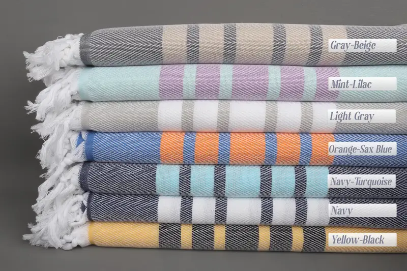 The Chevron Towel is characterized by its 36" x 67" dimensions and is woven from organic cotton, ensuring eco-friendly luxury. The towel weighs 380 grams and undergoes hand-weaving, resulting in tolerances of ±2" (5 cm). Customization options include embroidery or the addition of letters, names, or logos.