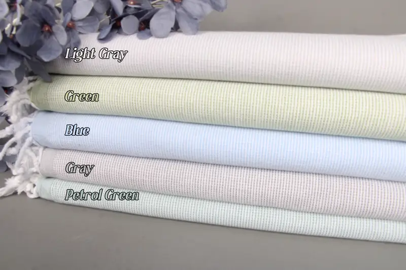 Constructed from organic Turkish cotton, these towels ensure high absorbency and durability. Each piece is woven by hand on looms, resulting in towels that are precisely 67x40 inches or 170x100 centimeters. The weight of these towels is standardized at 240 grams, with a tolerance of ±2 inches or 5 centimeters.