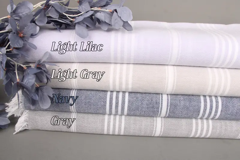 Each towel is made from organic Turkish cotton, ensuring premium quality and sustainability. Dimensions are 67x36 inches or 90x170 centimeters, with a weight of 160 grams. Weaving tolerances allow for variations of ±2 inches or 5 centimeters.