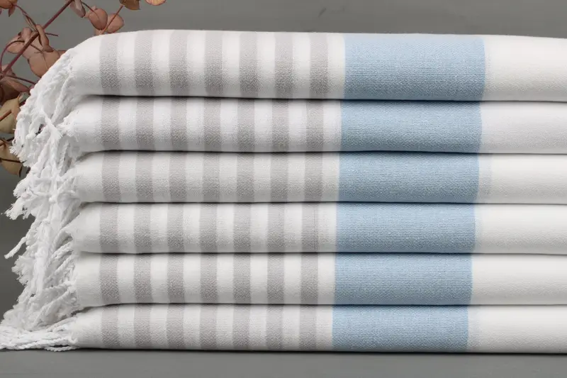 Organic Turkish cotton, sourced from Turkish looms, ensures the towel's superior absorbency and texture. Resulting in a durable and soft finish, these towels are characterized by their artisanal craftsmanship. Each towel measures 40x70 inches or 100x180 centimeters with a tolerance of ±2 inches or 5 centimeters, weighing between 425-475 grams.