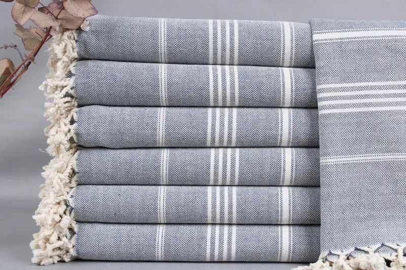Organic Turkish cotton, renowned for its high absorbency and durability, constitutes the primary fiber composition of the towels, ensuring optimal comfort and longevity. Measuring 40x71 inches or 100x180 centimeters, with a tolerance of ±2 inches or 5 centimeters, and weighing 300 grams, these products offer precise dimensions and consistent quality. Characterized by hand-weaving on looms, these towels allow for intricate designs and personalized touches.